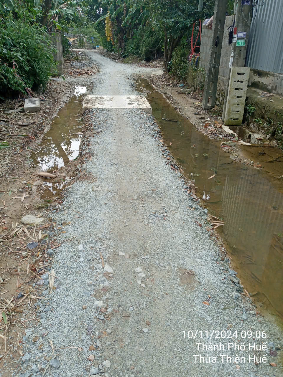 Công trình thi công tuyến đường xóm ông Phú tổ 6, khu vực 3, An Hòa, tp Huế (gần trường tiểu học An Hòa) quá chậm, nhà thầu đã bỏ dở thi công quá lâu gây đi lại người dân cực kì quá khó, học sinh đi lại quá vất vả. Kiến nghị các bên liên quan đẩy nhanh tiến độ công trình cho dân đi lại. Ảnh và video chụp lúc 10h ngày 10/11/2024.