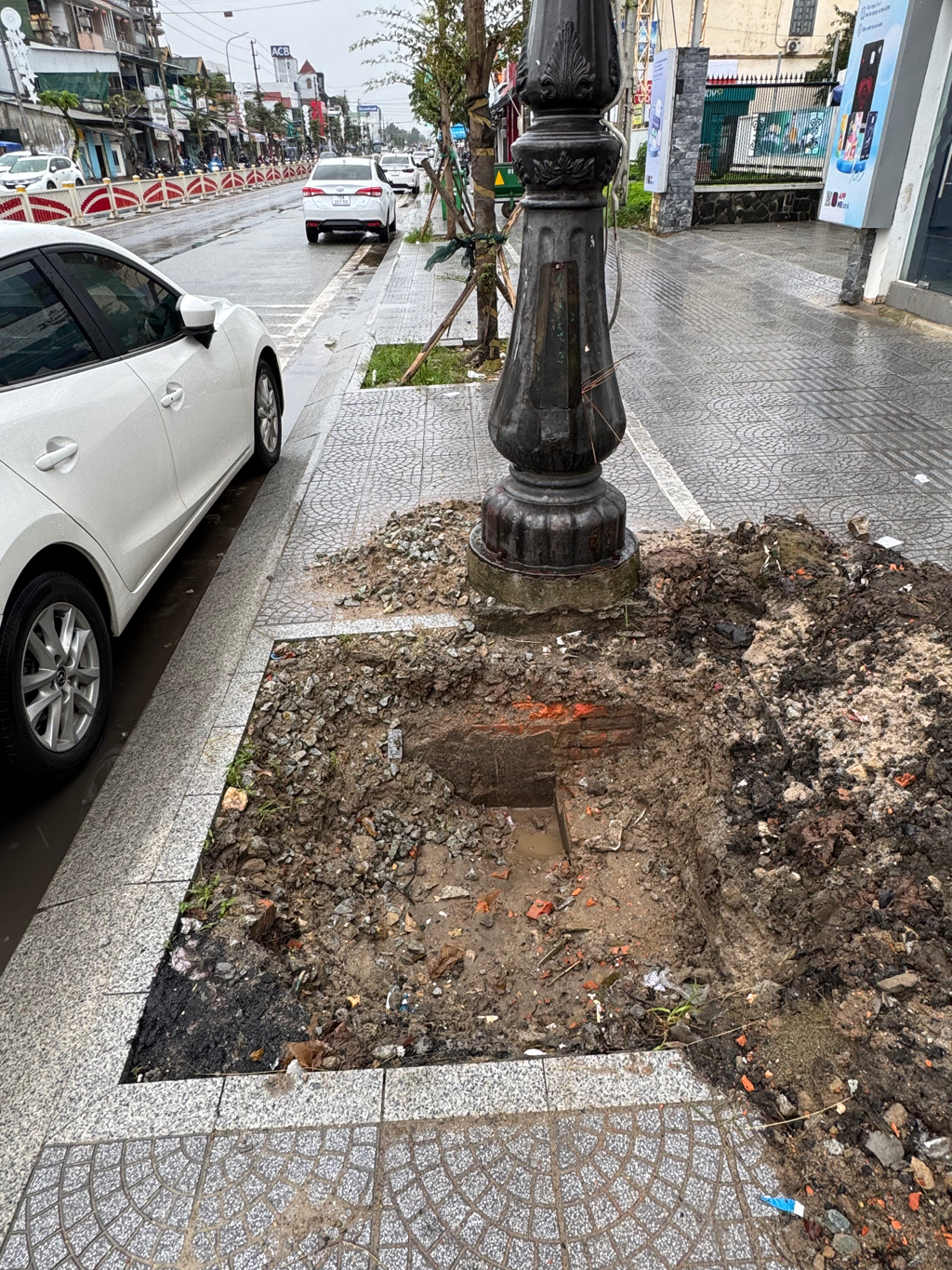Vỉa hè khu vực Phú Bài, từ đoạn 1056 đường Nguyễn Tất Thành, phường Phú Bài đến ngân hàng MB được đào hố để trồng cây, tuy nhiên 5 ngày qua vẫn chưa được trồng cây hay lấp lại, không có rào chắn gây nguy hiểm cho người đi bộ. Nhờ cơ quan chức năng hỗ trợ đôn đốc xử lý.
