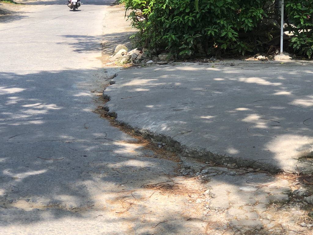 Đường xóm 5 Lại Thế được bê tông hoá cách đây 3 năm, với cơ chế nhà nước và nhân dân cùng làm. Tuy nhiên, hiện tại đoạn đầu đường kiệt giao với đường Lại Thế (kiệt 227) Phạm Văn Đồng đã bị xuống cấp (như hình). Tôi lo lắng tình trạng này ngày càng trầm trọng, gây nguy hiểm cho người tham gia giao thông ra vào hoặc đi ngang đó, chính bản thân tôi cũng từng bị ngã xe ở đây.