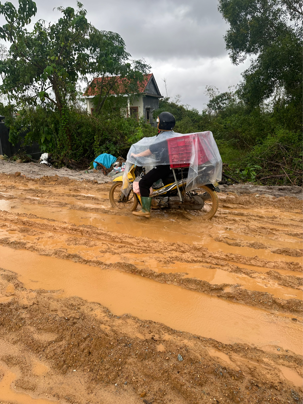 Con đường liên thôn từ thôn Thuỷ Diện qua Xuân Ổ, xã Phú Xuân, huyện Phú Vang. Đường chính đến 2 điểm trường mầm non và tiểu học, 1 chợ mà cả tuần rồi vẫn trong tình trạng như thế này. Người dân không đưa con đến trường được, tiểu thương thì chở hàng trong bùn lầy ngập ngụa, giao thông ách tắc. Chỉ có duy nhất 1 con đường để người dân đi lại mà không thấy nhà thầu xử lý cho người dân. Nhờ chính quyền quan tâm, đốc thúc, đẩy nhanh tiến độ để người dân có thể đi lại thuận tiện hơn.
