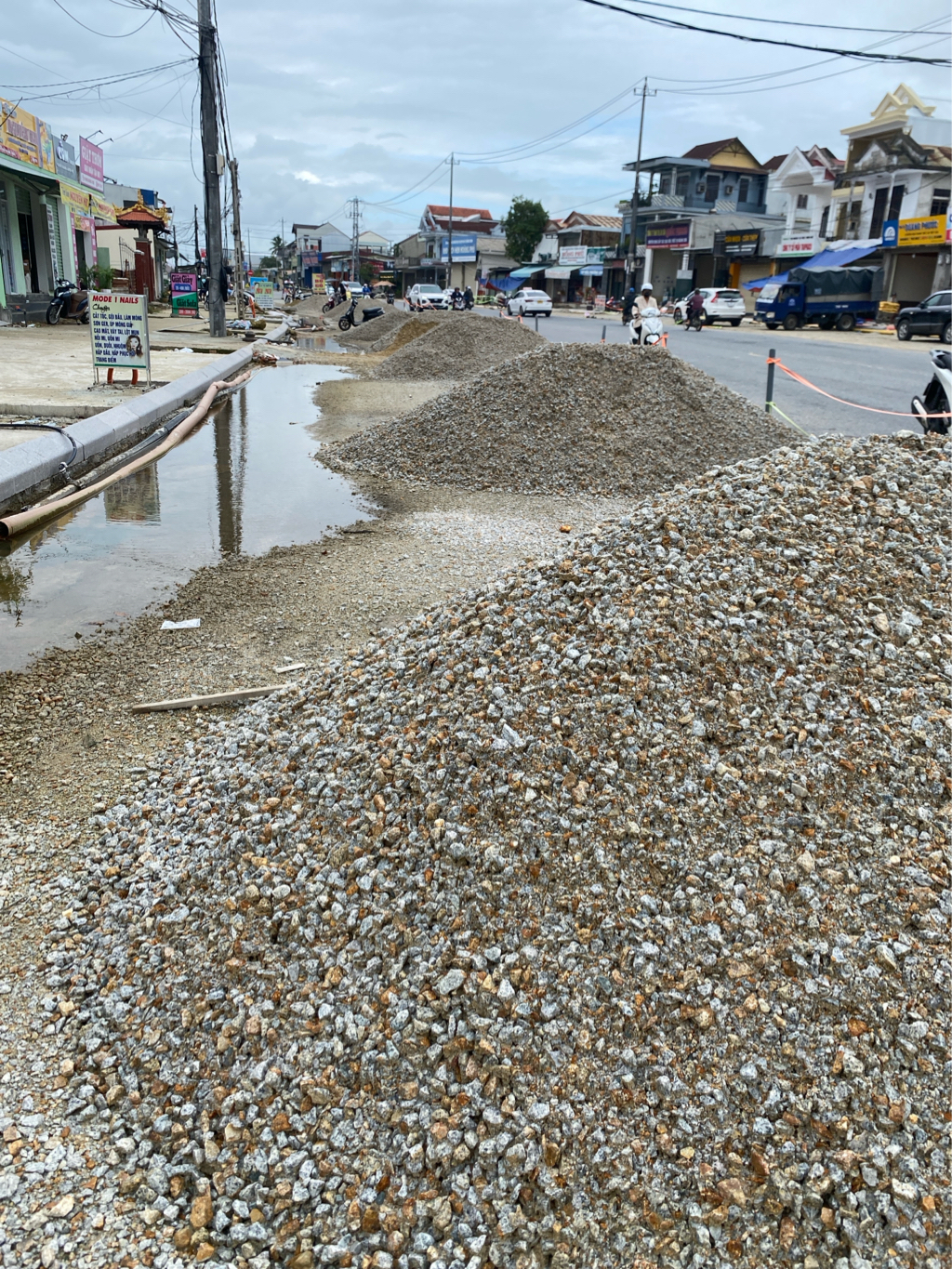 Đơn vị thi công đã cho đổ sỏi cách đây 5 ngày nhưng không cho xe san gạt làm ảnh hưởng đến sinh hoạt của người dân. Xe tải không vào bốc dỡ hàng hoá được. Không có nơi để dùng đỗ xe khi vào nhà.