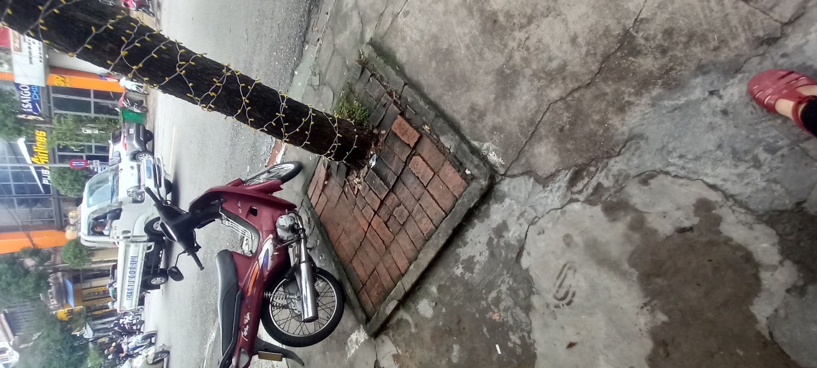 Ô trồng cây bị gạch lấp đầy, thân cây bị quấn dây điện xung quanh và có dấu hiệu bị nghiên. Kính mong cơ quan chức năng sớm khắc phục. Xin cảm ơn. Vị trí tại 38 Bà Triệu, Phường Phú Hội, Thành phố Huế