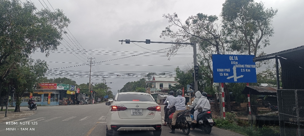 Đèn tín hiệu giao thông bị hư hỏng, rất dễ gây hiểu nhầm, đề nghị sớm khắc phục để đảm bảo an toàn giao thông tại ngã tư Tỉnh lộ 18 và Tỉnh lộ 10, Phú Vang, Thừa Thiên Huế.