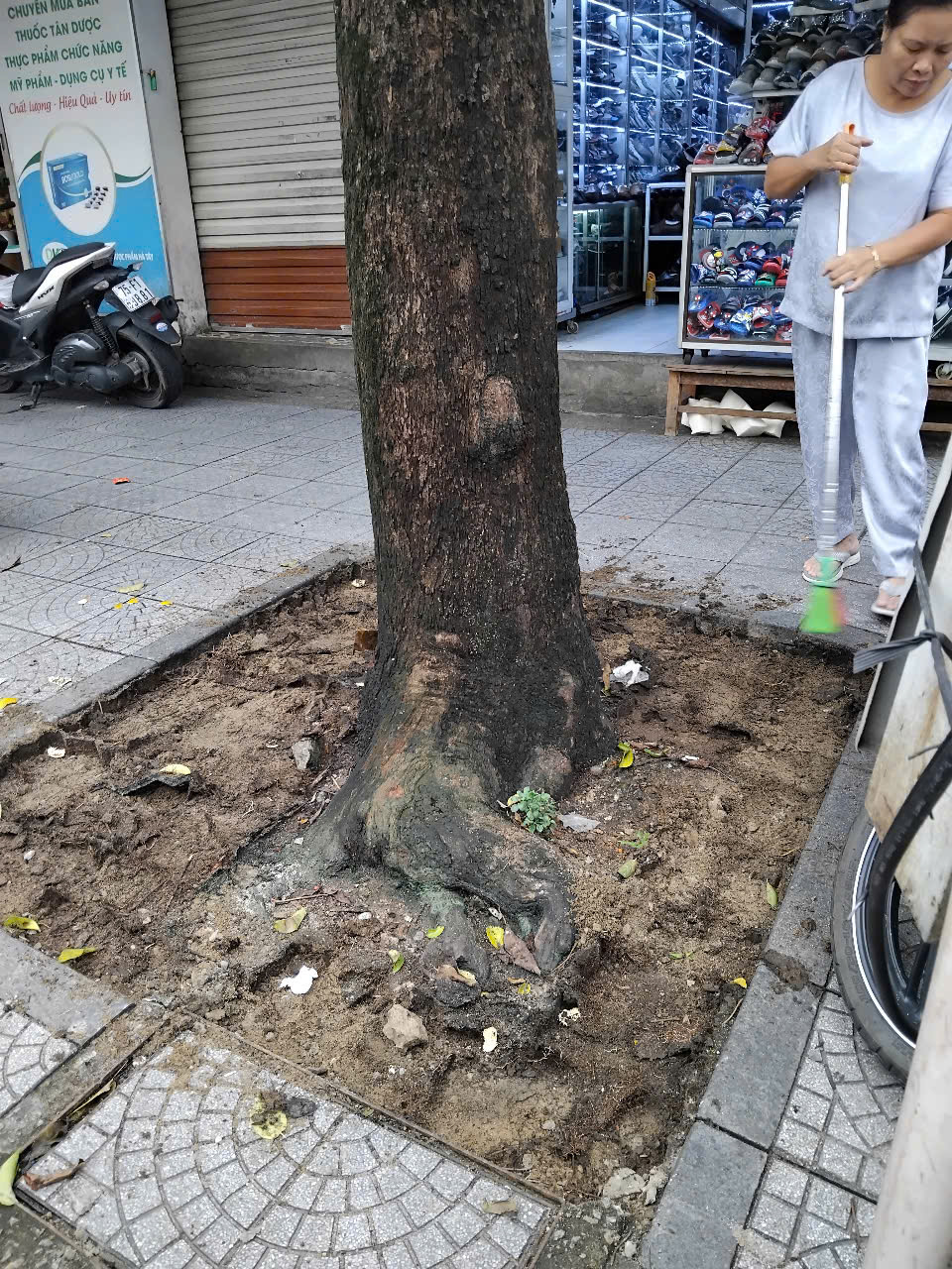 Trung tâm đã tháo gỡ gạch lát che lấp ô cây tại 132 Hùng Vương; đính kèm hình ảnh.
