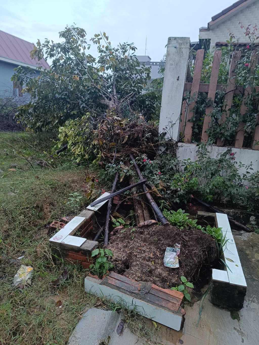 Do ảnh hưởng của bão số 6, cây Giáng Hương tại lô đất ODT444, khu quy hoạch Thanh Lam, giai đoạn 3, phường Thủy Phương, thị xã Hương Thủy đã bị đỗ (Hình ảnh kèm theo được chụp lúc 17h10 ngày 25/11/2024).