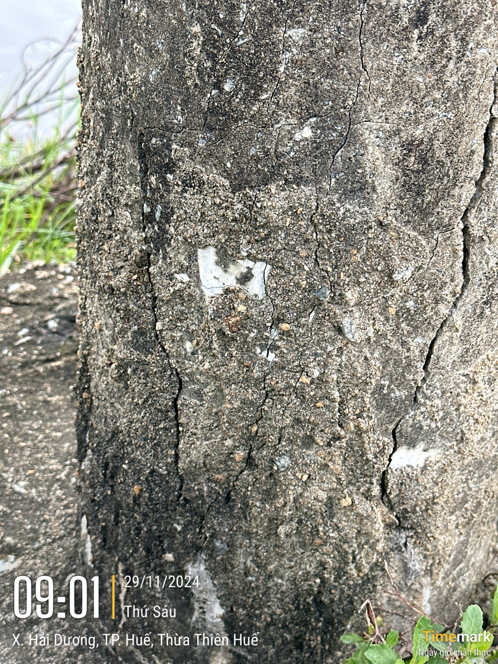 Trụ điện cao thế tại trạm biến áp Hải Dương 04 - HC530052, gần đường đang làm lên cầu treo vượt cửa biển xã Hải Dương - Thuận An, thuộc địa phận xã Hải Dương. Hiện trụ điện đã có nhiều vết nứt ở chân trụ rất nguy hiểm, khu vực này vào mùa mưa lũ hay bị ngập nước nên rất dễ ngã trụ. Yêu cầu điện lực Thừa Thiên Huế xử lý thay trụ gấp, để đảm bảo an toàn cho người dân đi lại trên đường.