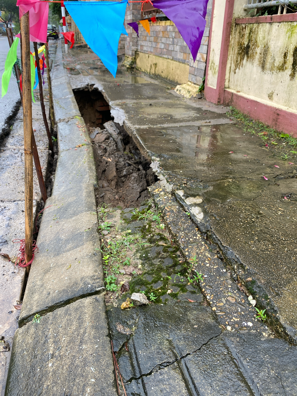Do mưa tối 11/12/2024 đã làm sập lún lề và rãnh thoát nước trước nhà 27 Trần Nguyên Đán. Xin giải quyết gấp.