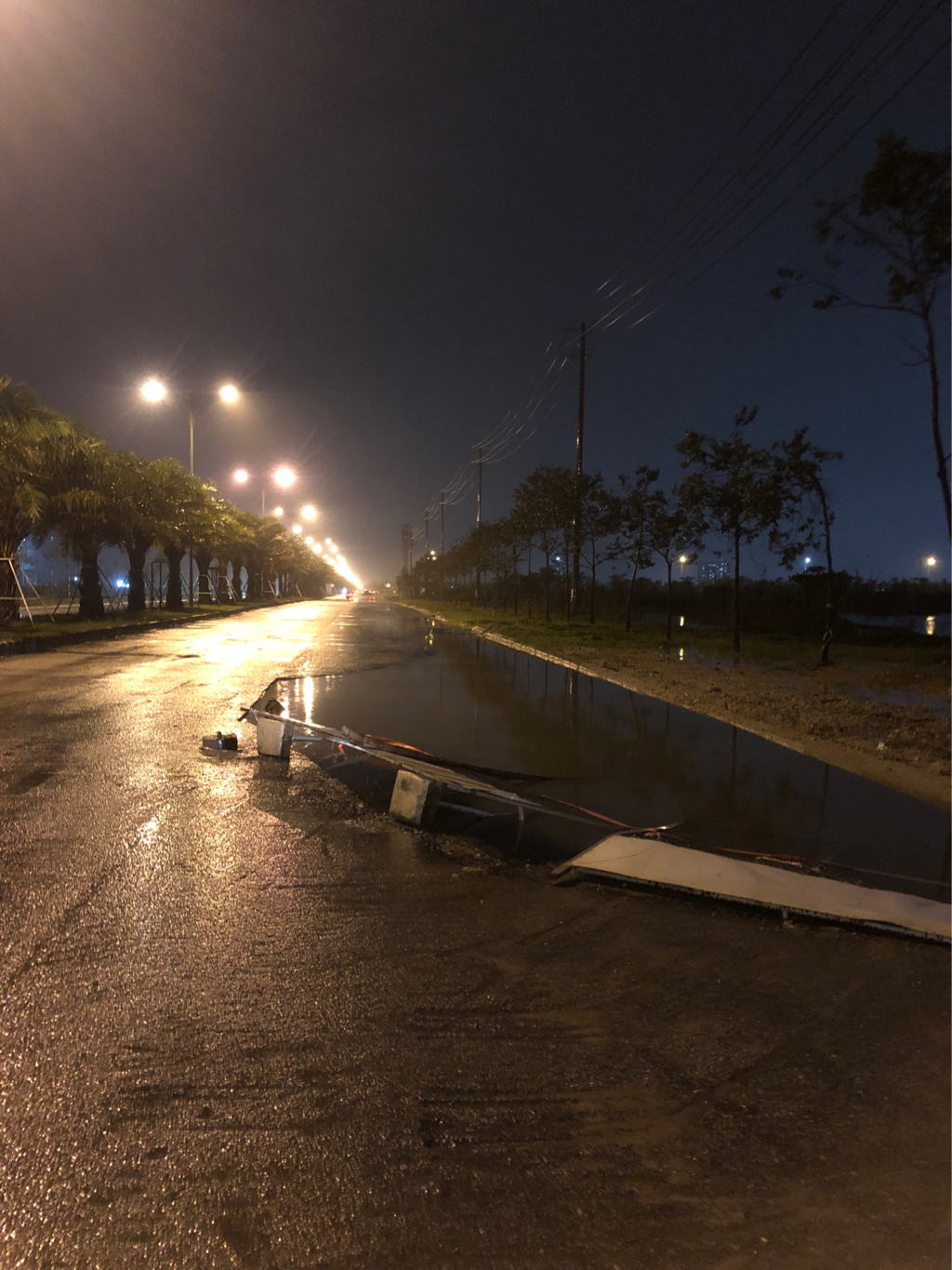 Đường Võ Chí Công qua phường Thủy Vân (gần đến đường Lê Đức Anh) đang sửa chữa, tuy nhiên các rào chắn cảnh báo gãy đổ gây nguy hiểm cho người đi đường lúc trời tối mưa gió hạn chế tầm nhìn. Mong cơ quan chức năng xử lý. Xin cảm ơn.