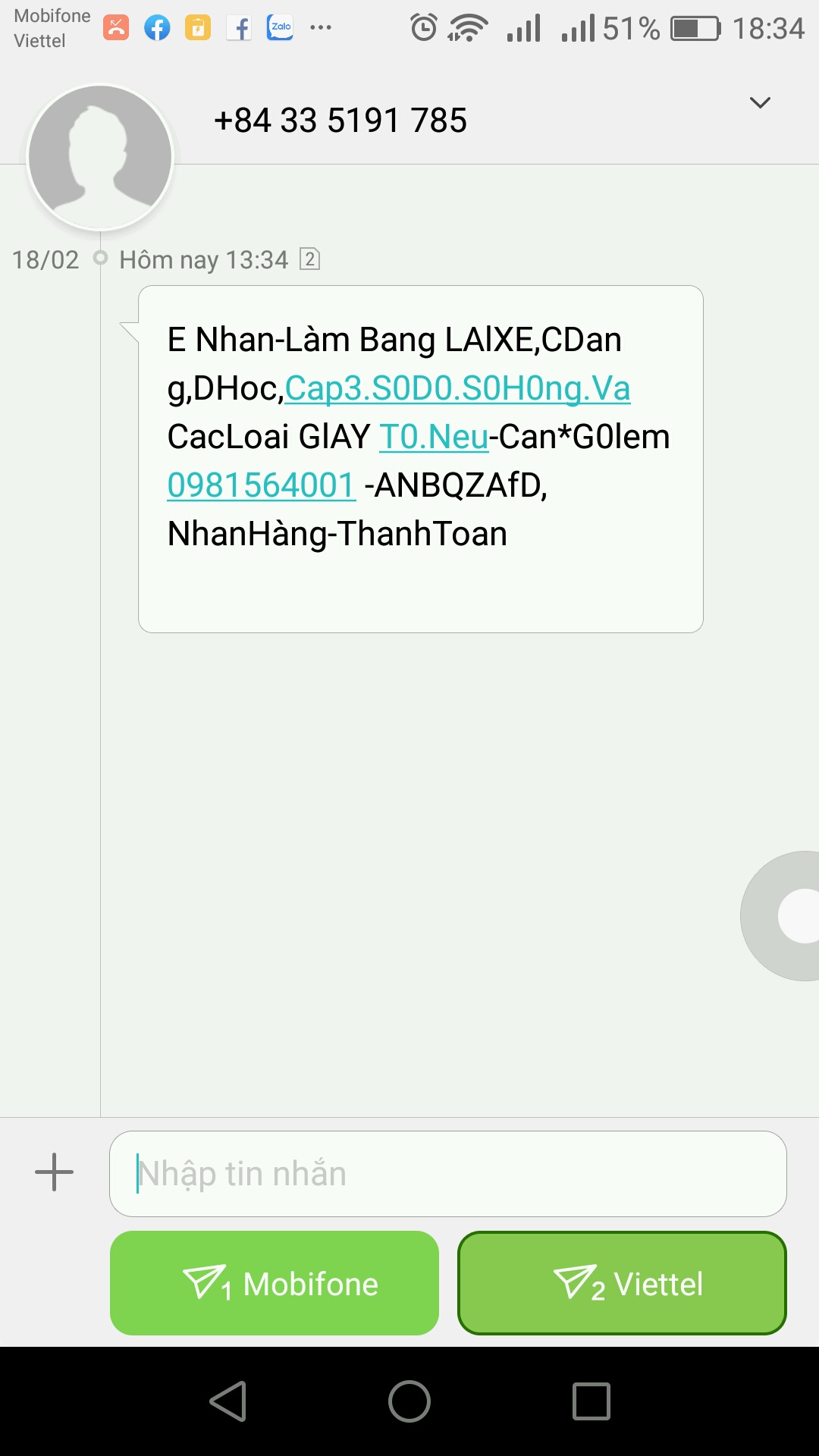 - Tin nhắn với mục đích lừa đảo, quấy rối hoặc phát tán virus máy tính, phần mềm gây hại hoặc gửi các thông tin độc hại như lừa đảo, chống phá Nhà nước, kích động bạo lực.