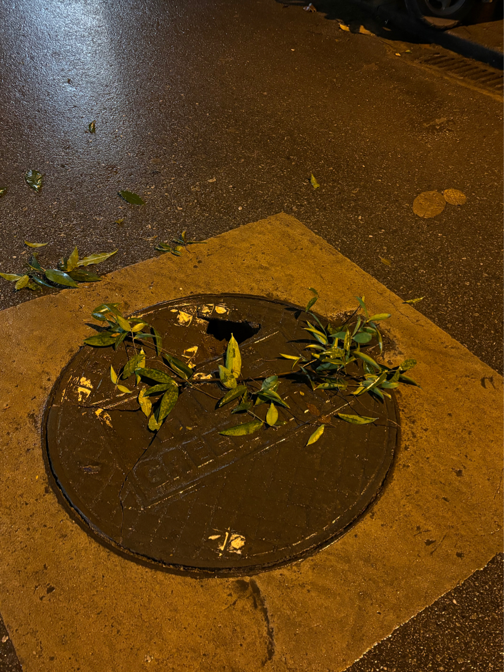 Sập nắp cống ở ngã tư Lê Thánh Tôn giao Tịnh Tâm.