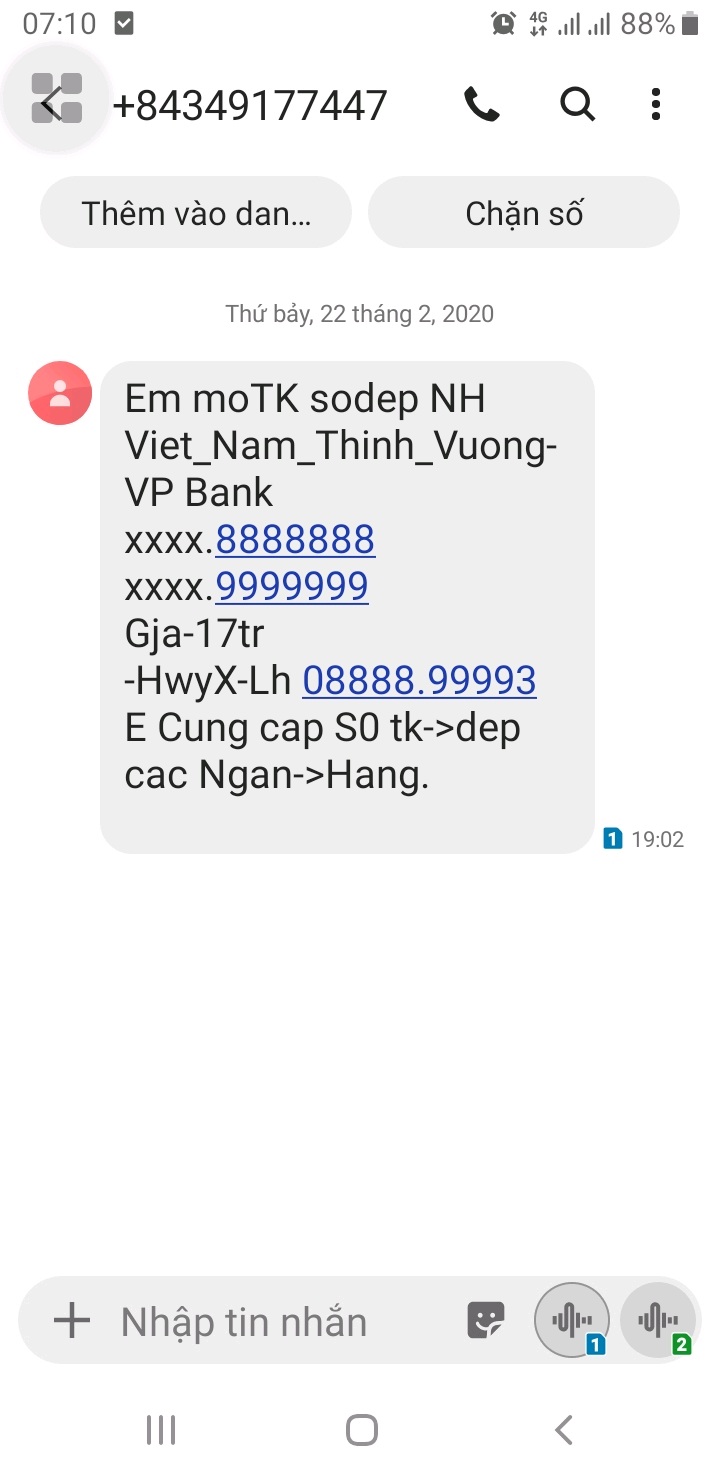 Nhờ quý cơ quan chức năng xử lý tin nhắn rác làm phiền.