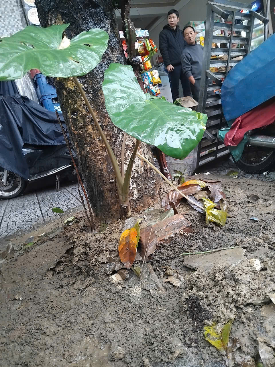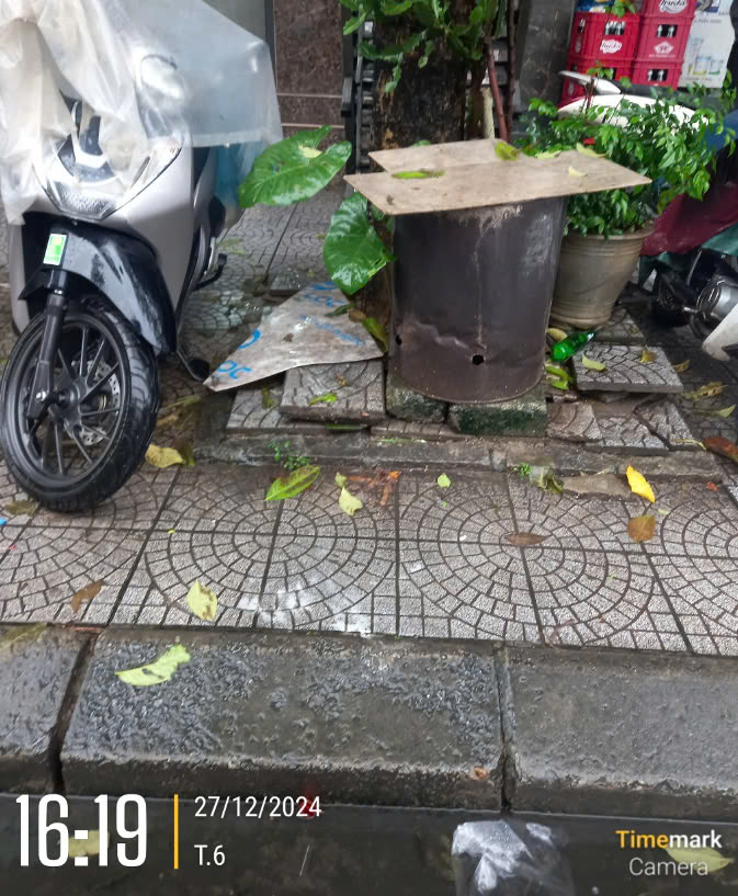Chậu cây, thùng đốt vàng mã, gạch vỉa hè che lấp ô cây ở trước 39 Trường Chinh. Kính gửi xử lý. Xin cảm ơn.