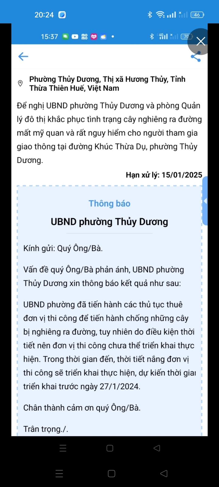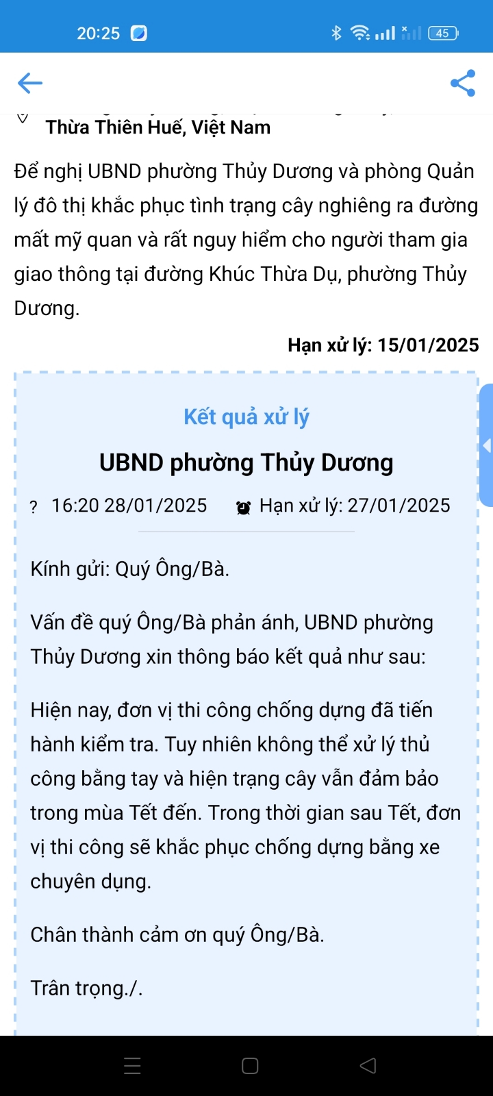 Đến thời điểm này vẫn chưa xử lý đề nghị TT kiểm tra để UBND phường Thủy Dương thực hiện lời hứa !!