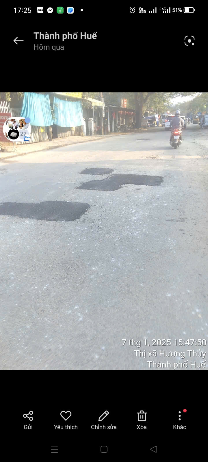 Vị trí quý Ông/Bà phản ánh là đoạn tuyến thuộc Km0-Km0+500 đường Tỉnh 25. Sau khi nhận được phản ánh, Sở GTVT đã chỉ đạo đơn vị quản lý tuyến đường cho vá ổ gà đảm bảo giao thông. (có hình ảnh kèm theo)