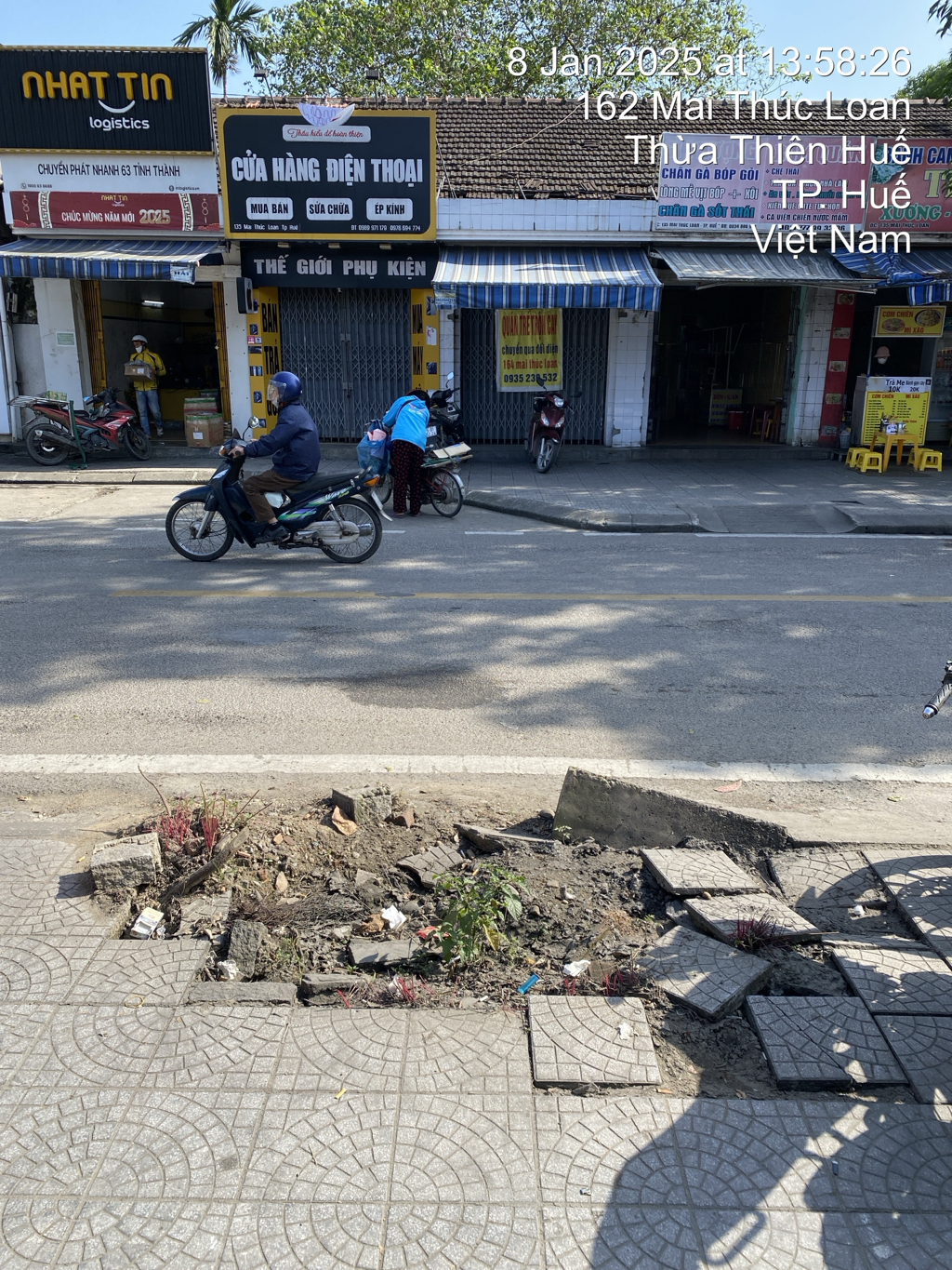 Khu vực vỉa hè trước mặt ngân hàng Quân Đội 164 Mai Thúc Loan gạch bị bung lên nhưng đô thị vẫn không có động thái xử lý.