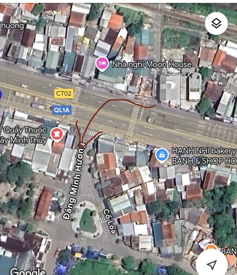 Có lẽ tôi mô tả chưa cụ thể nên quý cơ quan hiểu chưa đúng. Ý của tôi là lắp thêm biển báo phụ hướng dẫn người dân “ Đèn đỏ cho phép rẽ trái sang đường” hướng QL1A rẽ vào Đặng Minh Hường. Có thể lắp biển phụ vào trụ đèn giao thông hiện có. Vì khi đèn đỏ các phương tiện xe tải trên QL1A đang dừng, thì các xe máy rẽ trái sang đường vào Đặng Minh Hường sẽ an toàn cho người dân hơn. Quý vị hãy đến khảo sát thực tế trụ đèn đó và ý của ngừoi dân sẽ rõ sự bất cập khi sang đường tại nút giao từ QL1A rẽ trái vào Đặng Minh Hường (hướng rẽ như mũi tên đỏ trong hình )