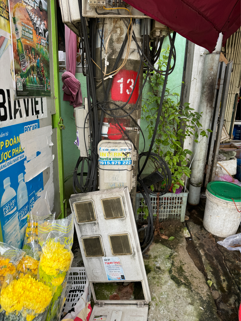 Hộp điện rớt nguy hiểm tại ngã tư Thích Tịnh Khiết giao với đường Đồng Khởi (sát tạp hoá Khánh Loan). Kính gửi cơ quan chức năng xử lý.