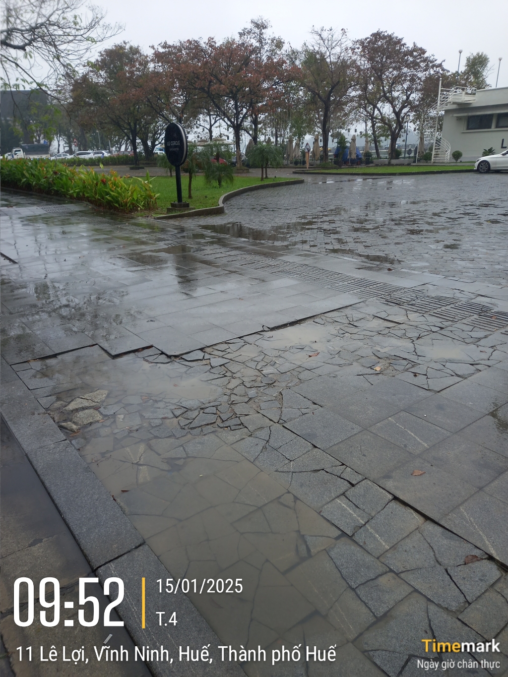 Gạch vỉa hè vỡ vụn ở số 11 Lê Lợi. Kính gửi xử lý. Xin cảm ơn.
