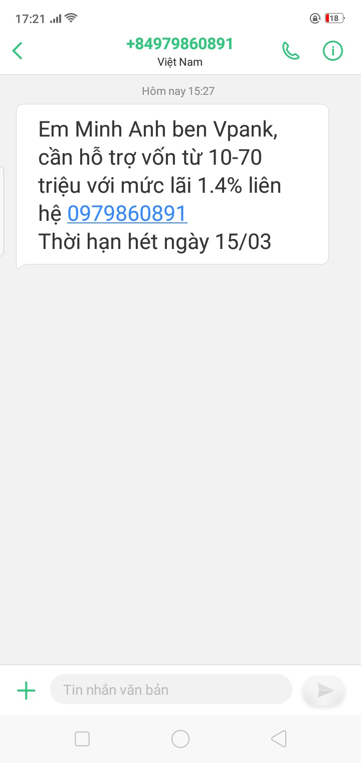 Đề nghị Viettel xem số điện thoại này quá làm phiền đến tôi . 0979860891. Tôi xin cám ơn trước ạ.