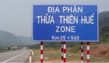 Bảng thông tin chưa đổi từ Thừa Thiên Huế thành Thành Phố Huế ở cao tốc La Sơn Tuý Loan (điểm giáp ranh TP Huế và TP Đà Nẵng).