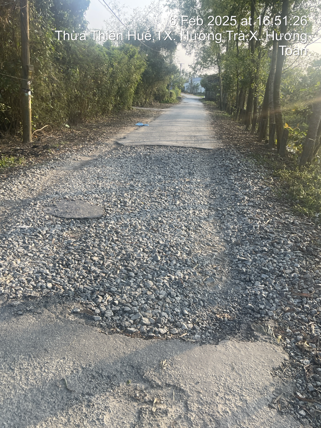 Tại Xóm Đồng, thôn Giáp Tây, xã Hương Toàn, thị xã Hương Trà, bị hư hỏng mặt đường 4-5 năm nay mà không thấy ai sửa chữa. Kính mong cơ quan chức năng kiểm tra, xử lý.