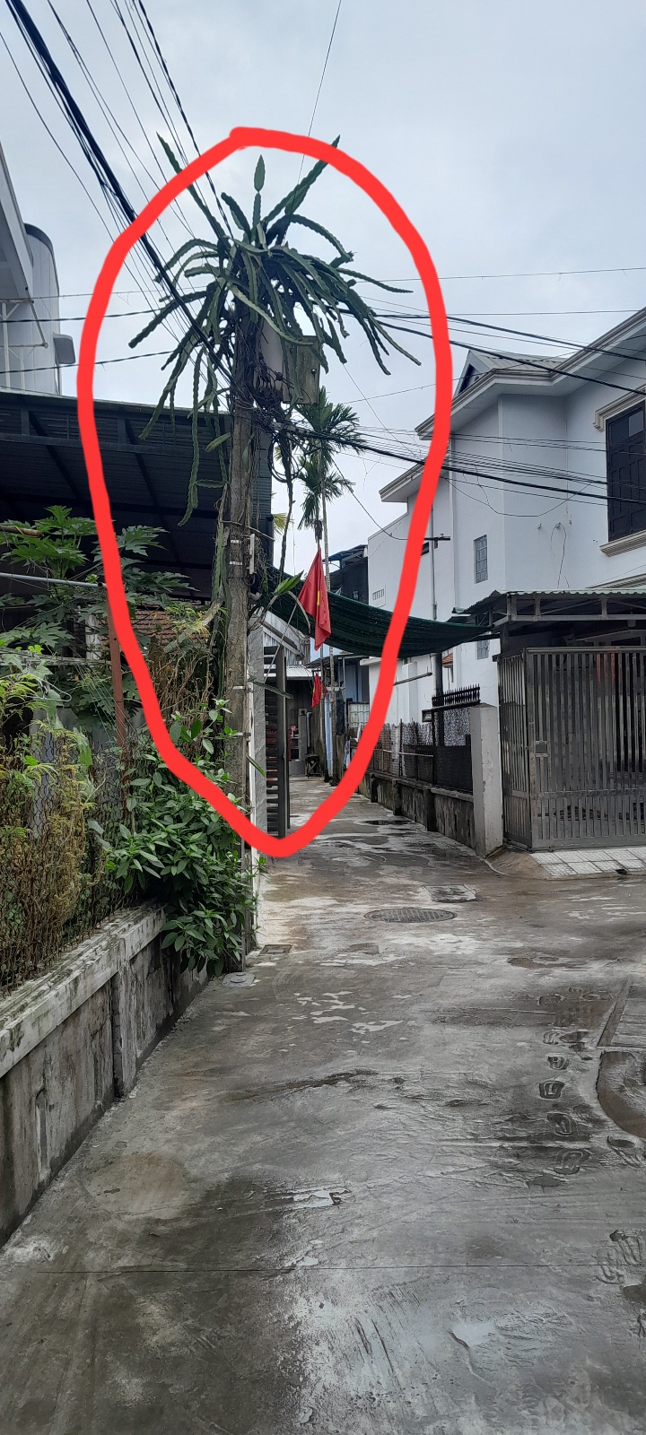 2. Cột điện phía trước nhà số 2 kiệt 129 An Dương Vương, P. An Đông, Q. Thuận Hóa, TP. Huế đã lâu năm và có khoảng hở không cần thiết với tường rào. Ảnh chụp sáng 09/02/2025. Đề nghị cơ quan chức năng thay mới để đảm bảo an toàn, đồng thời bố trí trồng cột điện (mới) sát vào tường rào để tăng không gian lối đi cho người dân lưu thông thuận lợi.