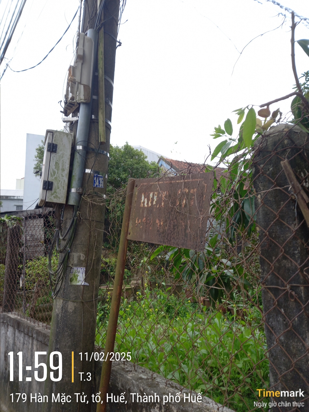 Bảng tên kiệt 177 Hàn Mặc Tử, phường Vỹ Dạ, bị gỉ sét. Kính gửi cơ quan chức năng xử lý. Xin cảm ơn.