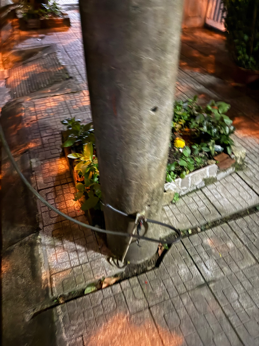 Cột điện trước số nhà 18 Nguyễn Đoá, phường Hương Sơ đứt rất nguy hiểm. Đề nghị công ty điện lực khắc phục sớm. Ảnh chụp vào lúc 18h45 ngày 14/2/2025.