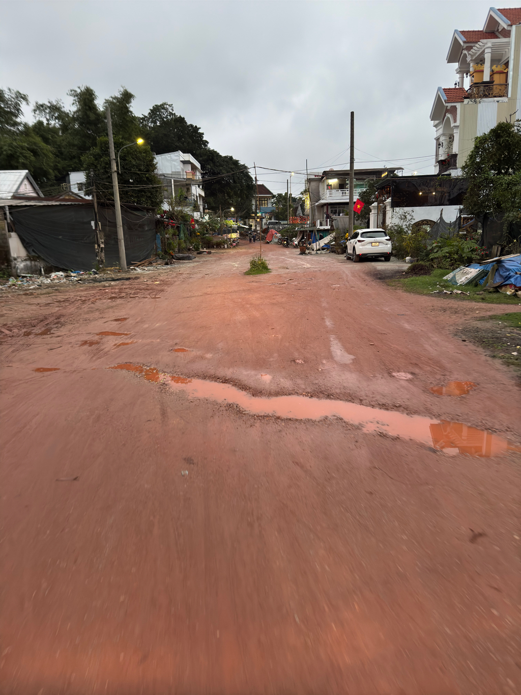 Đoạn đường kiệt 166 Điện Biên Phủ thuộc phạm vi xây dựng tuyến đường số 9 dự án HTKT khu định cư Bàu vá giai đoạn 4. Về đoạn đường này, Ban QLDA đã điều chỉnh thiết kế mở rộng vỉa hè phía trái tuyến và phải tuyến giáp với nhà dân hiện trạng theo mong muốn kiến nghị của người dân nhằm thuận tiện giao thông đi lại và nâng cao mỹ quan đô thị. Đến nay, đã thi công được một phần tường chắn nằm hai bên phía nhà dân hiện trạng. Theo hồ sơ thiết kế được duyệt, phần đắp đất nền đường Tuyến đường số 9 được tận dụng lấy đất trên phần diện tích Hộ nhà Bà Cam, Bà Gái thuộc phạm vi dự án. Tuy nhiên đến nay phần diện tích này vẫn chưa được các cơ quan có liên quan hoàn thành công tác GPMB, do đó kéo dài công tác thi công hoàn thành trên tuyến đường này. Để có cơ sở thực hiện, sớm thi công hoàn thành tuyến đường này, Ban QLDA đã có Văn bản số 2468/BĐTPT-DAHT ngày 13/12/2024 báo cáo UBND tỉnh (nay là UBND thành phố), trong đó kiến nghị chỉ đạo UBND thành phố Huế (nay là UBND Quận Thuận Hóa) đẩy nhanh công tác GPMB phần diện tích đất ở của hộ dân Bà Cam, bà Gái trong để triển khai hoàn thành dự án. Trường hợp do khách quan, vướng mặt bằng kéo dài, kiến nghị thống nhất chủ trương để Ban QLDA mua đất về đắp nền K95, K98 (có Văn bản kèm theo). Vì vậy, sau khi có ý kiến chỉ đạo của cấp có thẩm quyền, Ban QLDA mới có cơ sở triển khai thực hiện.