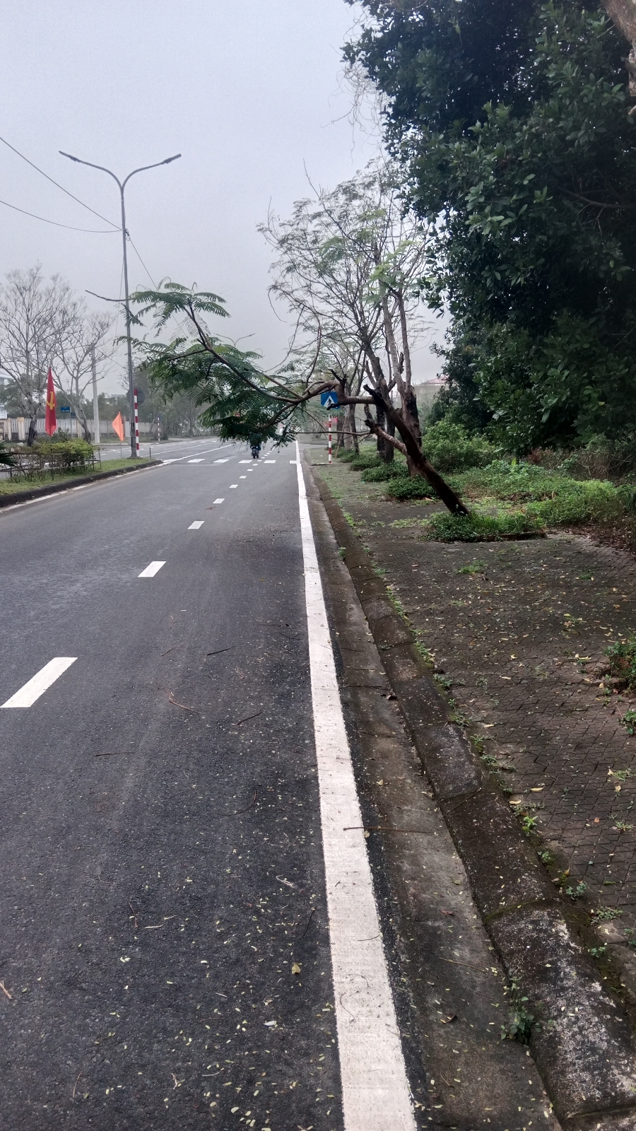 Qua kiểm tra vị trí phản ánh tại tuyến đường Đỗ Tram TDP Hòa Tây, thị trấn Phú Đa, huyện Phú Vang, tỉnh TP Huế có cây phượng tại vĩa hè đổ ra phía mặt đường. UBND thị trấn đã tiến hành cắt tỉa và dựng lại đảm bảo cảnh quan cây xanh. (Đính kèm hình ảnh)