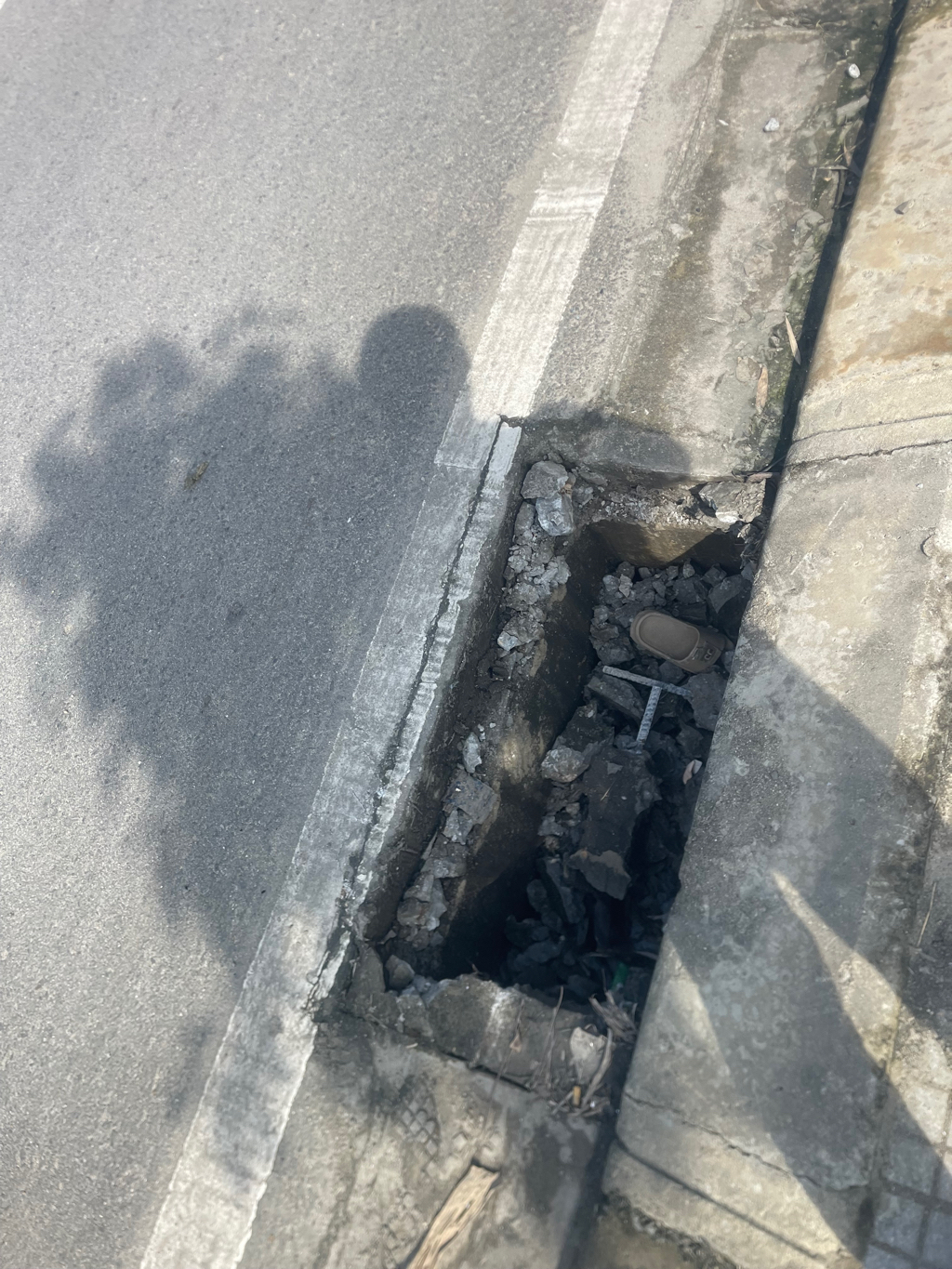 Hố ga bị sập nguy hiểm đến xe đi đường tại tuyến đường Thuỷ Dương - Thuận An (đoạn thôn Mong An, Phú Mỹ, Phú Vang).
