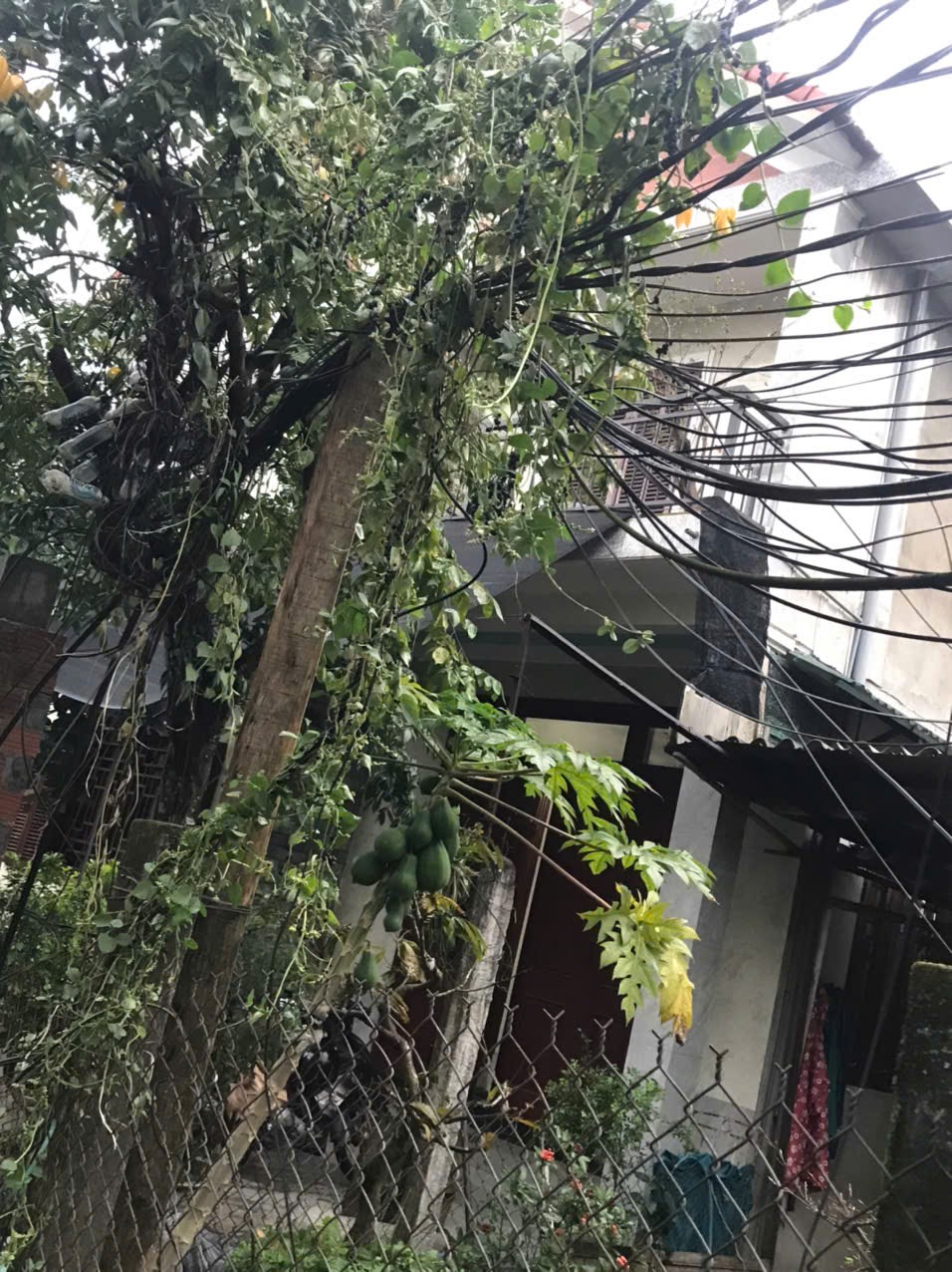 Vẫn còn 1 đoạn chưa được xử lý ở vị trí hàng rào nhà dân. Các đoạn dây điện và dây mạng chồng chéo lẫn nhau nhìn rất rối rắm và ở trong tầm với tương đối thấp , cao 2 m so với mặt đất. Gây mất an toàn và thẫm mỹ cho dân cư sống quanh khu vực. Mong cơ quan chức năng xem xét và giải quyết. Xin chân thành cám ơn