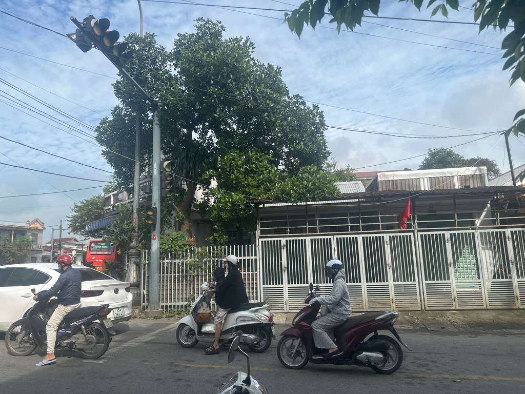 Dây điện lòng thòng gây nguy hiểm cho người tham gia giao thông tại cửa Chánh Tây; thành phố Huế.