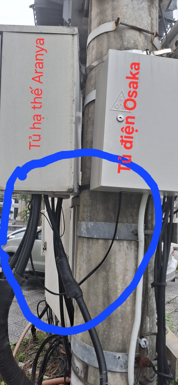 Vị trí đấu điện qua tủ hạ thế của tòa nhà CT3 - Chung cư Aranya theo phản ánh do Công ty Điện lực Thành phố Huế thực hiện hạ thế đấu vào đồng hồ của dự án Đại Lộc để phục vụ cho dự án Osaka đã đủ điều kiện khởi công (ảnh chụp đính kèm).