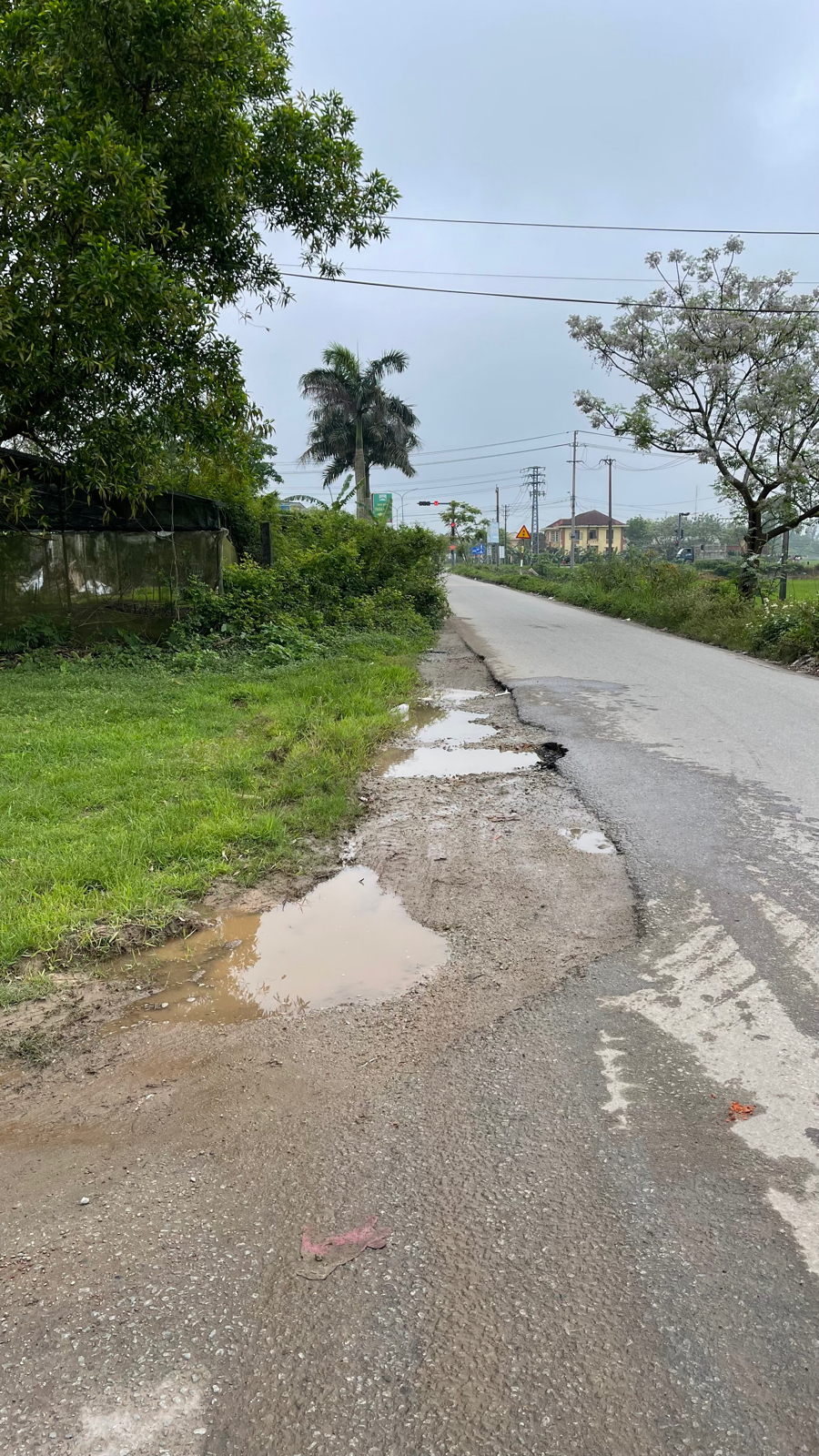 Đường đi đã lâu không đắp lên cho cao, đường nhỏ nhưng mà nhiều phương tiện giao thông qua lại, và nhiều xe tải lưu thông nữa, nguy hiểm cho các xe nhỏ, đường lún như này các xe nhỏ tấp vào tránh cũng nguy hiểm. Địa chỉ: Dọc đường Nguyễn Văn Linh, đường vào các Bệnh viện da liễu - phổi, quận Phú Xuân, Huế.