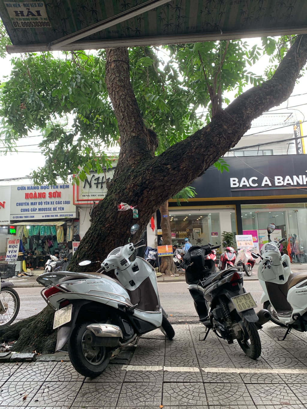 Cây Cối (Gội) ở vỉa hè trước mặt nhà 103 Mai Thúc Loan, Phường Đông Ba, Quận Phú Xuân, TP Huế bị nghiêng nặng, rễ tộng bộng nguy cơ sập. Đề nghị cơ quan chức năng xem xét thay cây mới.
