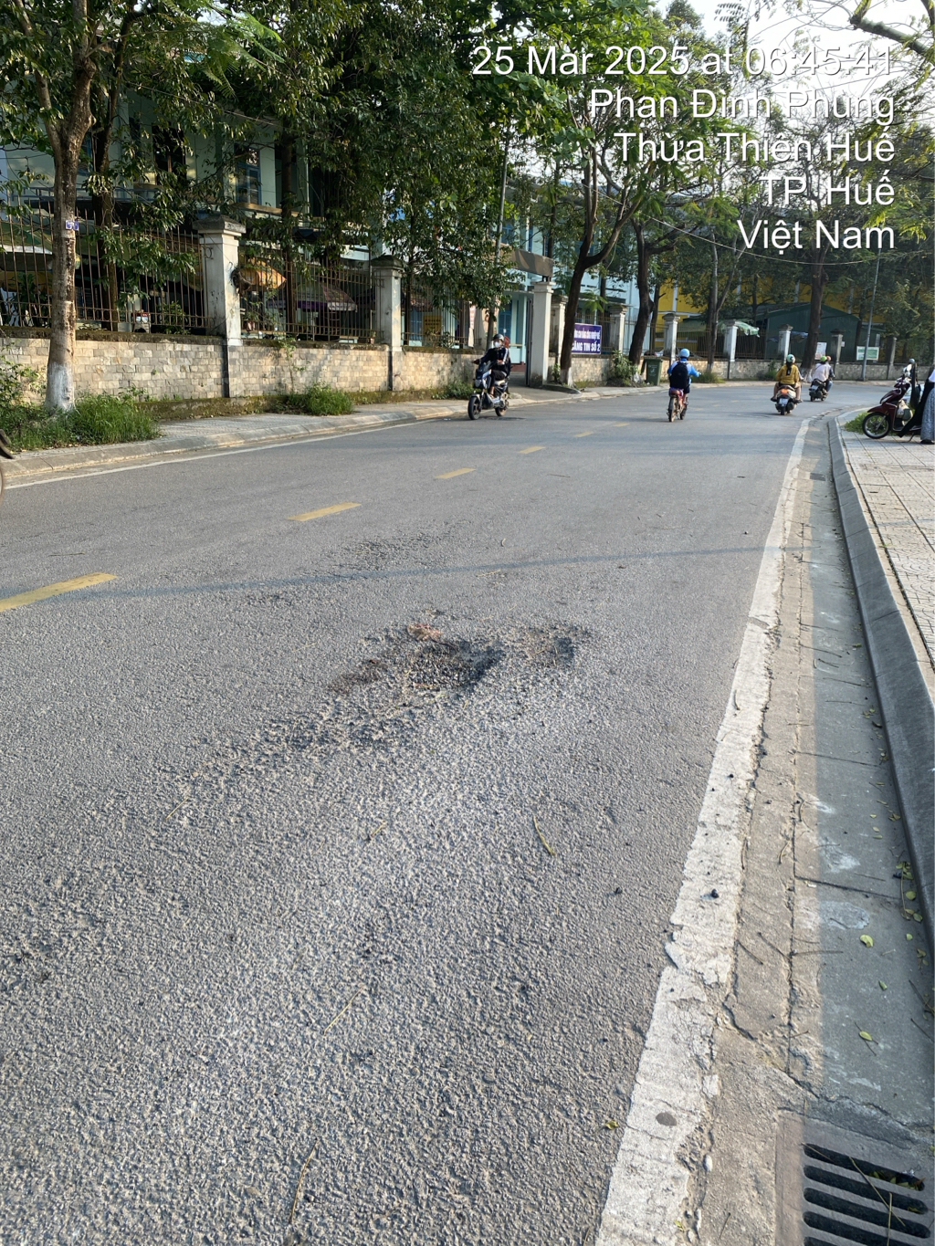 Ổ gà tại cổng sau Trường CĐ Công nghiệp Huế, đường Phan Đình Phùng. Kính gửi cơ quan chức năng xử lý.