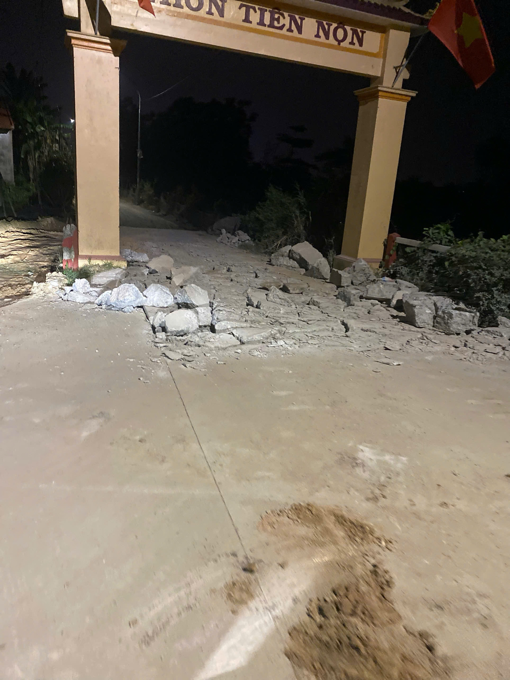 Chiều nay tại Cổng làng thôn Tiên Nộn, phường Dương Nổ, thành phố Huế, một số công nhân làm đường đã đục phá bê tông để làm đường nhưng không hề có một biển thông báo để cảnh báo người dân. Đoạn đường này ngay khúc cua rẻ vào thôn nên rất nguy hiểm. Kính mong cơ quan chức năng phường Dương Nổ xử lý để không có sự việc đáng tiếc xảy ra.