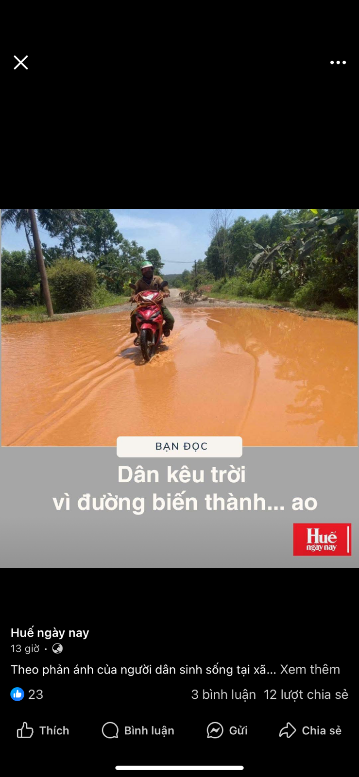 Để xử lý tình trạng này ngày 31/03/2025 Sở xây dựng đã có công văn gởi sở nông nghiệp và môi trường xử lý đoạn mương hư hỏng nói trên. Đến ngày 09/04/2025 sở nông nghiệp và môi trường đã chỉ đạo Công ty TNHH MTV khai thác thuỷ lợi TP-Huế kiểm tra xử lý(có công văn đính kèm).