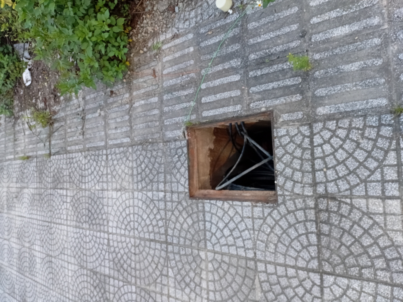 Hiện nay rất nhiều nắp của hệ thống cáp ngầm đã bị lấy trộm tại khu quy hoạch Hương Sơ mới trước Nhà lô A21, Khu quy hoạch Hương Sơ mới, đường Tản Đà, phường Hương Sơ, để lại chỗ trống rất nguy hiểm cho người đi bộ trên lề đường.
