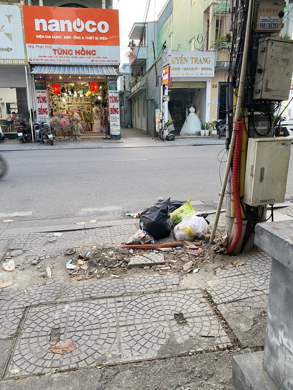 Kiến nghị hoàn trả mặt bằng tại đầu kiệt 40 Nguyễn Sinh Cung, Vỹ Dạ, TP Huế. Cột điện cũ di dời còn lòi phần sắt, gạch vỉa hè thì vỡ vụn, cáp viễn thông thì nằm lên trên mặt đường, nhìn rất nhếch nhác và mất mỹ quan. Kính gửi cơ quan chức năng xử lý.