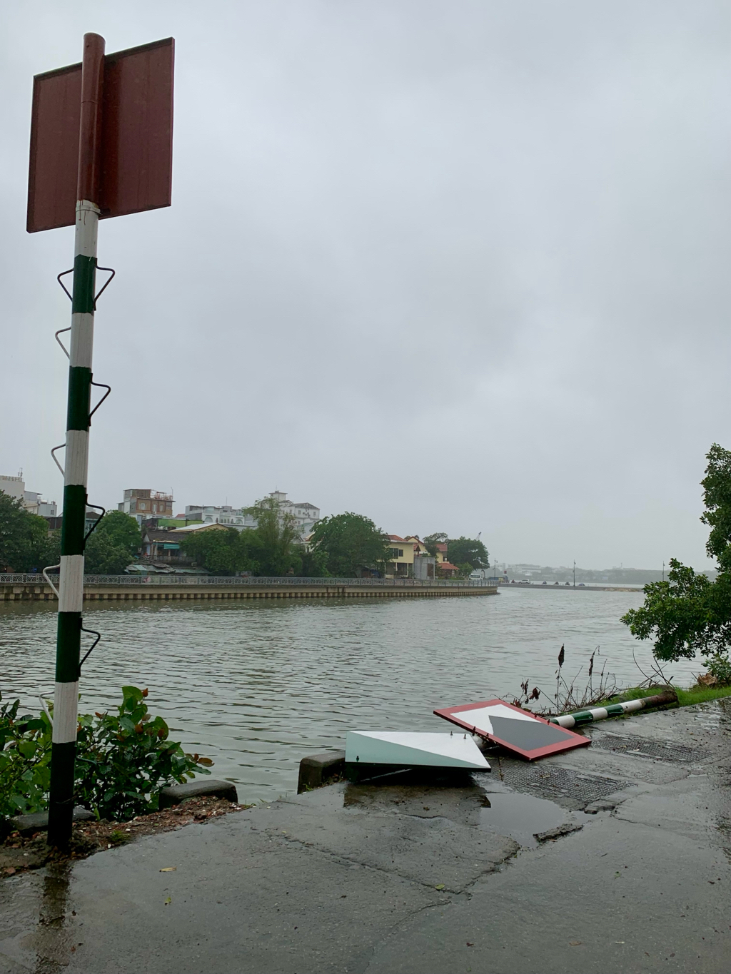 Đúng như phản ánh của Ông/Bà, tại vị trí số nhà 37 – 41 đường Hàn Mặc Tử dọc bờ sông Như Ý, quận Thuận Hóa có bộ báo hiệu giao thông đường thủy bị đổ sập do đêm 12/4/2025 có mưa to, gió mạnh dẫn đến đất đá phần chật cột bị xói lở.