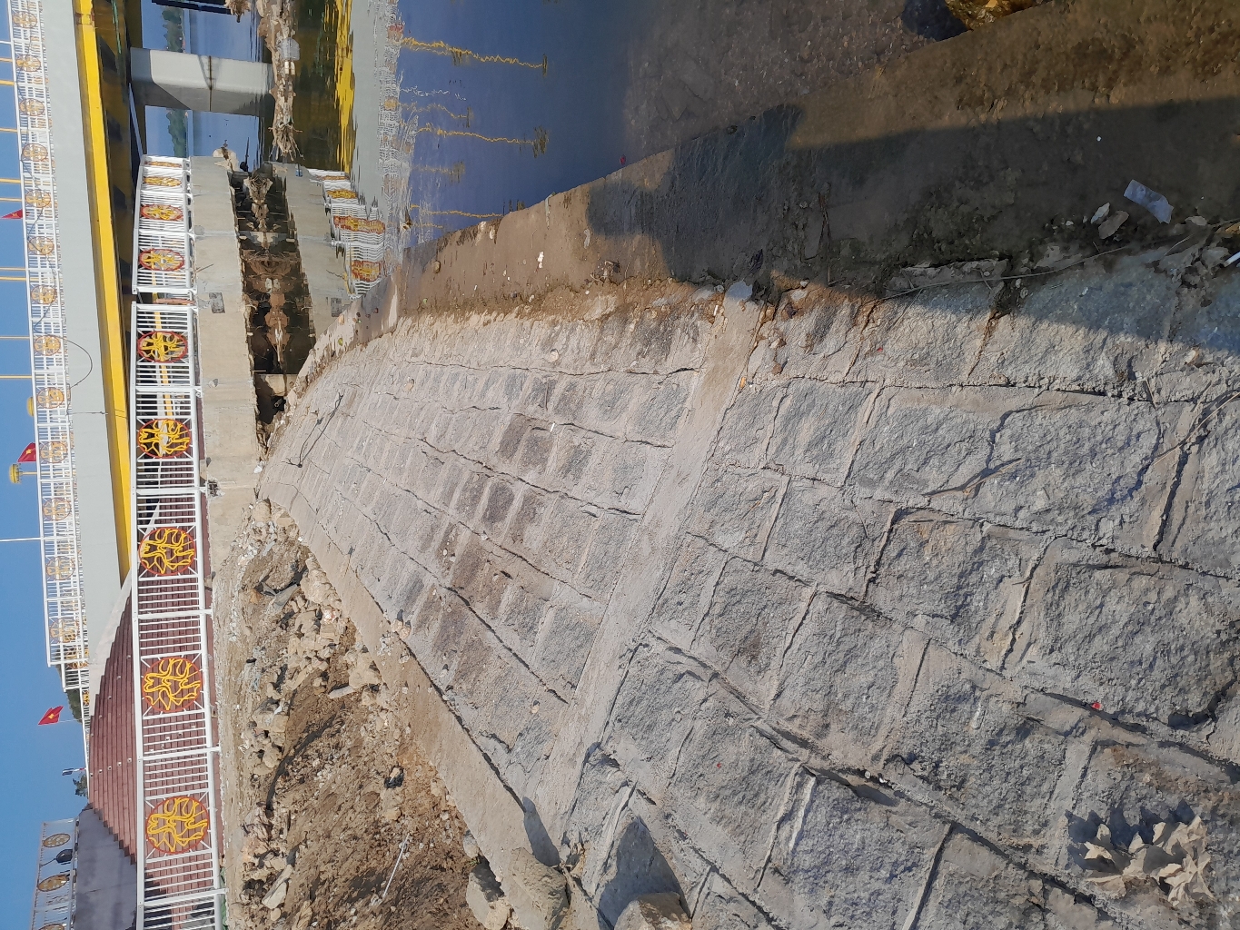 Phần kè này được thiết kế để chống sạt lở phần đường đi bộ đúng như nội dung phản ánh. Quá trình thi công đúng theo hồ sơ thiết kế được phê duyệt; phần kè này bao gồm 02 phần: phía dưới chân kè trọng lực bằng bê tông xi măng đổ tại chỗ, trên phần mái trồng cỏ và sát mép nước có gia cố chân mái bằng đá xay.