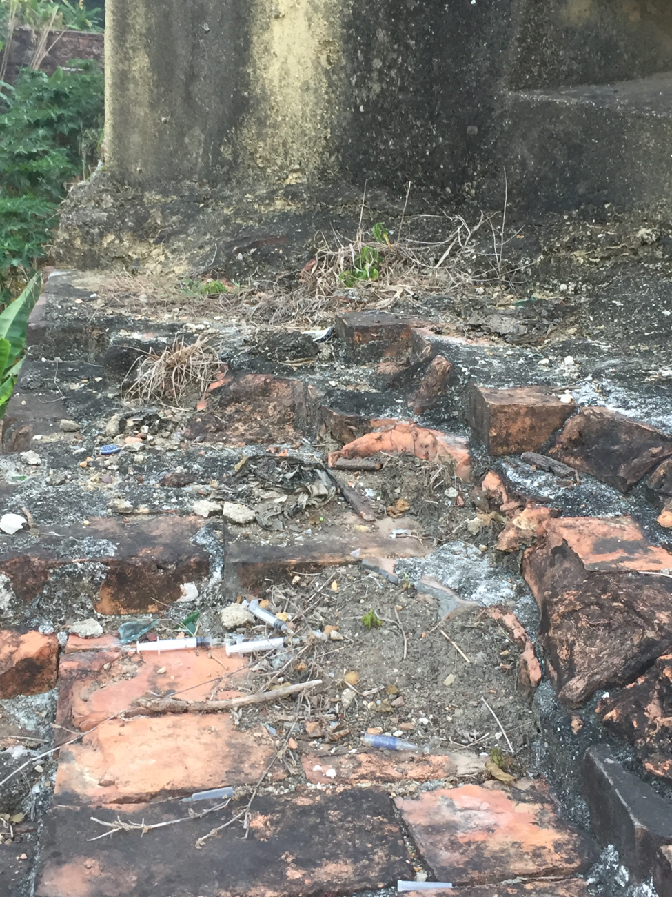 Tình trạng tiêm chích ma tuý trên thành Cống Thuỷ Quan gần như công khai vì lối đi lên không được rào bảo vệ cũng như không có người kiểm tra xử lý, kim tiêm được ném thẳng xuống sông và vứt vương vãi trên thành cống. Đề nghị các cơ quan có liên quan kiểm tra xử lý kịp thời và dứt điểm. (Ảnh chụp lúc 7h ngày 28 tháng 3 năm 2020 tại Cống Thuỷ Quan, đường Tôn Thất Thiệp, Phường Thuận Hoà, thành phố Huế)