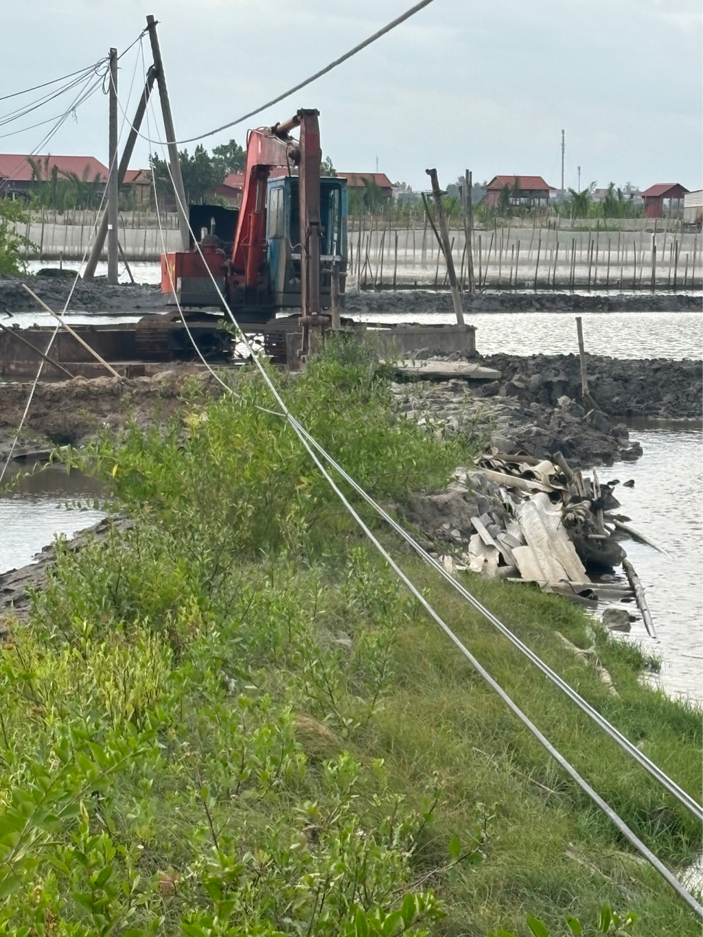 Dây điện rơi xuống hồ nuôi tôm cá, cản trở công việc và rất nguy hiểm tới tính mạng tại