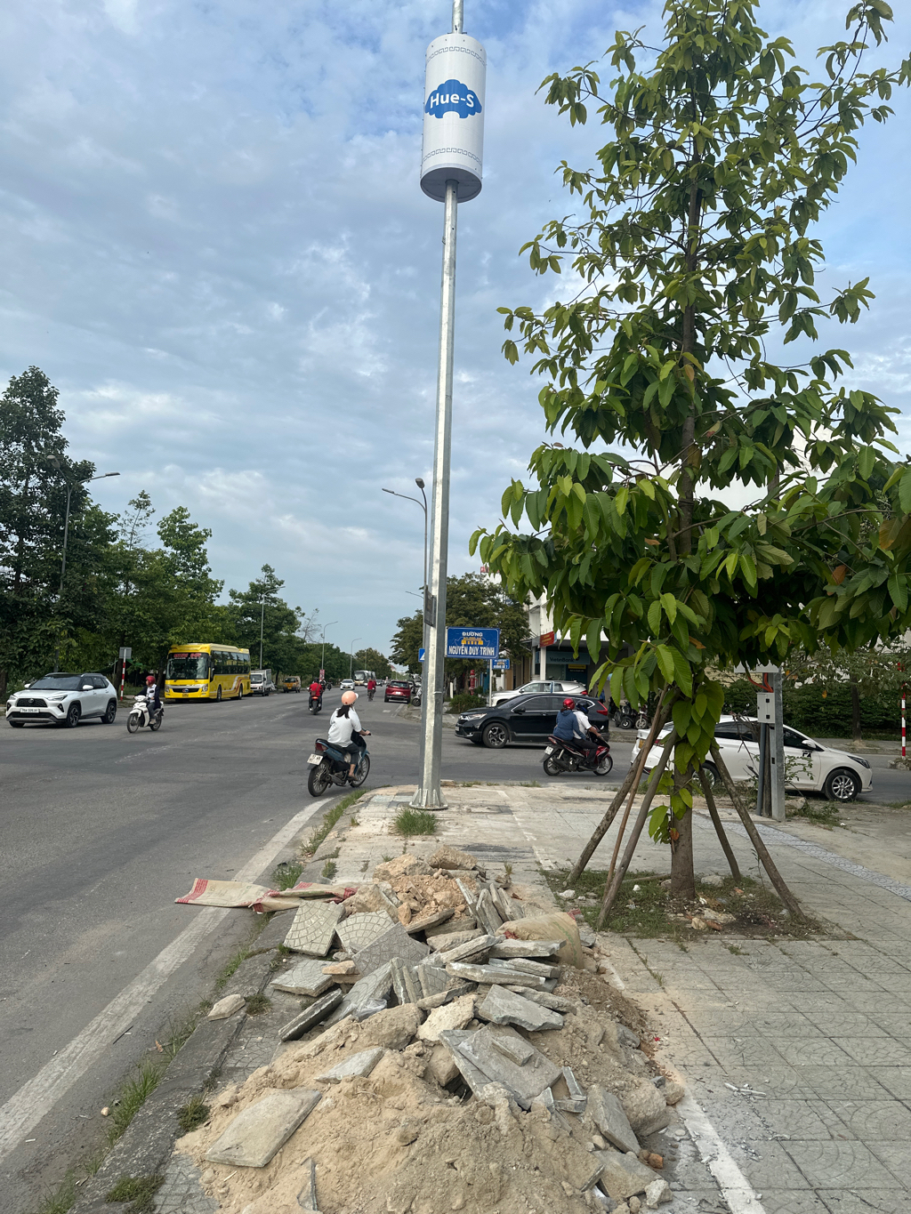 Vật liệu ngổn ngang trên vỉa hè là của Đô thị thi công vỉa hè, không liên quan đến MobiFone.