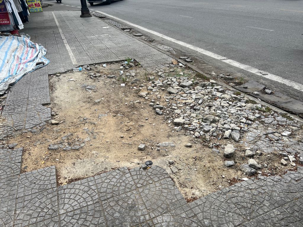 Vỉa hè tại 138 Nguyễn Huệ, Phú Nhuận, Thuận Hoá, Huế hư hỏng gây mất mỹ quan và bất tiện cho người tham gia giao thông.