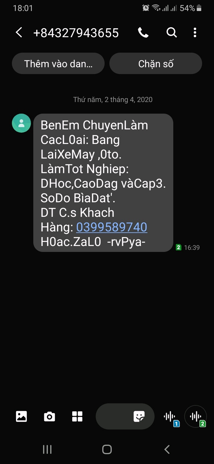 - Tin nhắn với mục đích lừa đảo, quấy rối hoặc phát tán virus máy tính, phần mềm gây hại hoặc gửi các thông tin độc hại như lừa đảo, chống phá Nhà nước, kích động bạo lực.