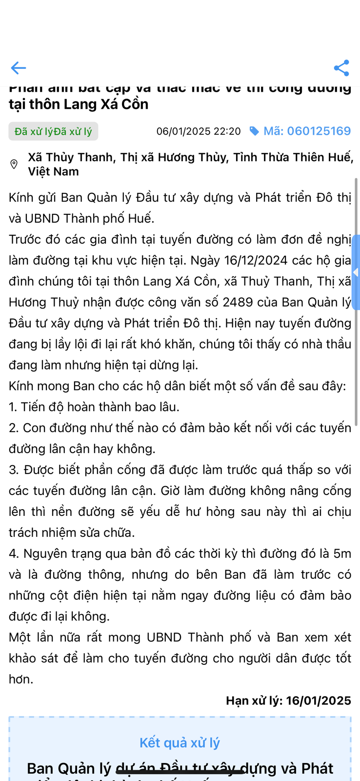 Trên đây là phản hồi của Ban QLDA về ý kiến phản ánh.