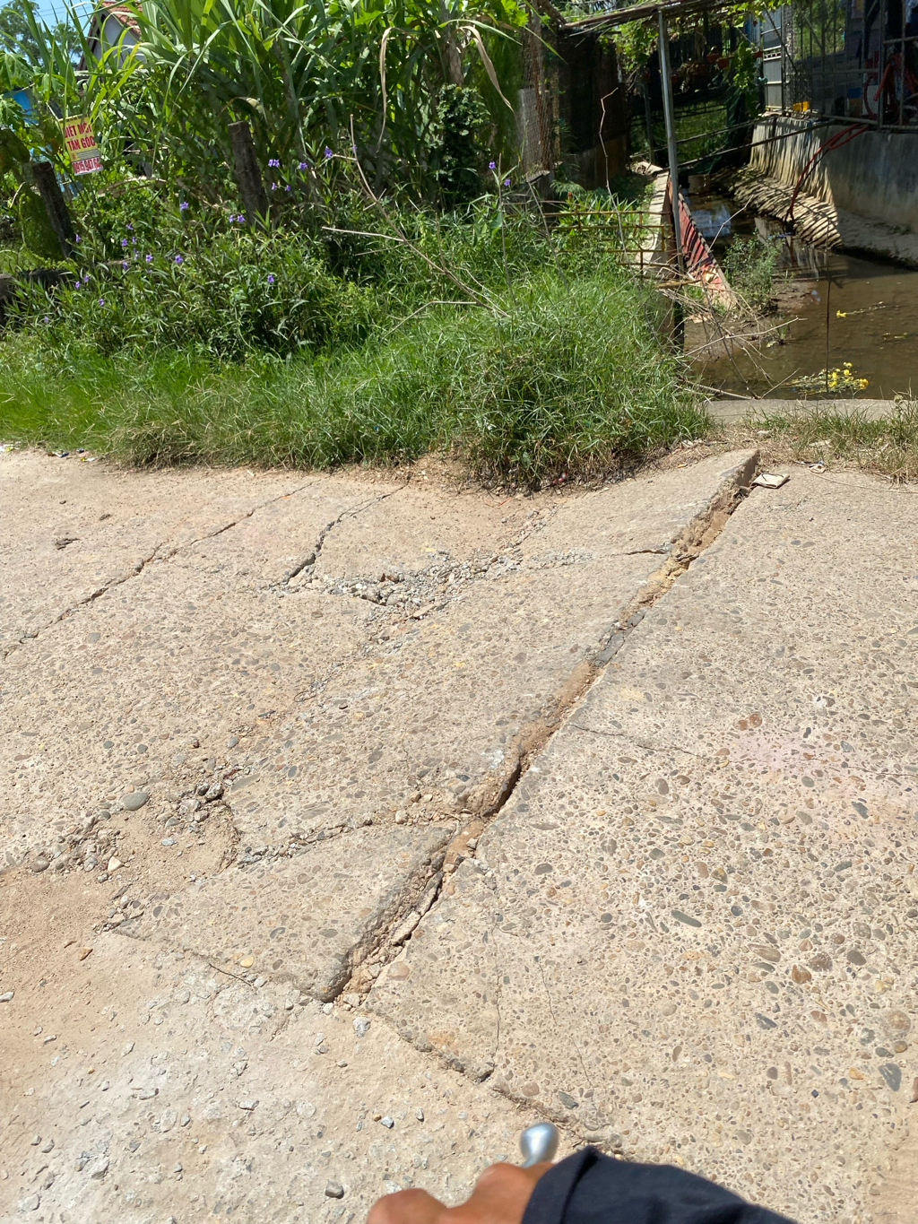 Bề mặt cống ở đường Cao Bá Đạt trước mặt nhà Văn hoá TDP 9, phường Thuỷ Phương bị sụt lún, nứt vỡ và nhô lên gây mất an toàn giao thông.